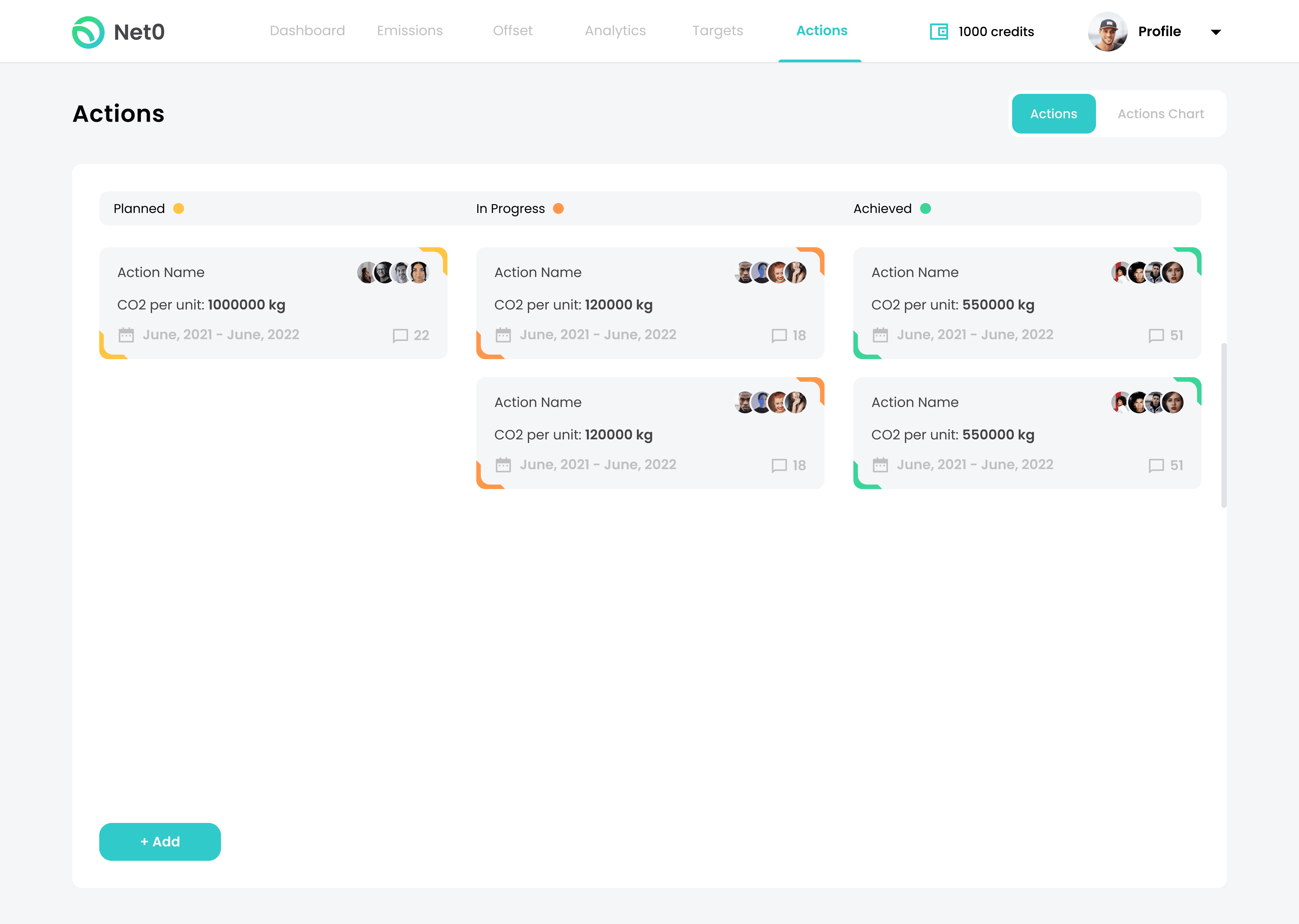 Use Net0's initiative planning functionality to involve teams in carbon reduction efforts.